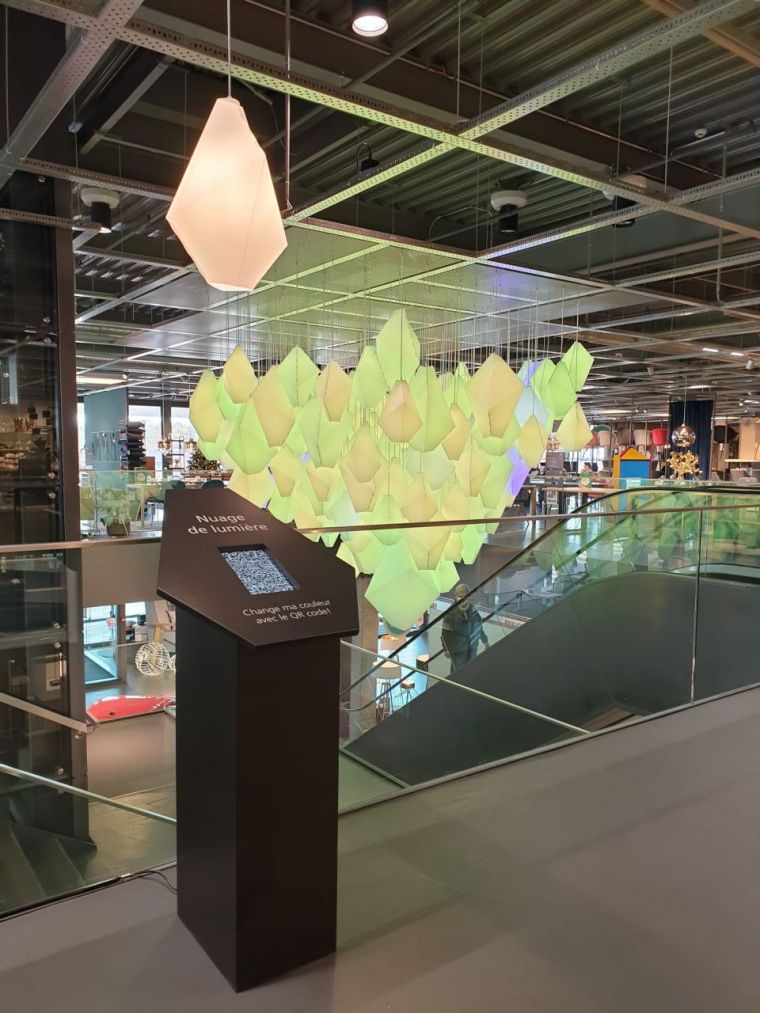 Polarlights, Bloom, Christmas und Entrance: Das sind die vier verschiedenen Stimmungen, welche die Lichtinstallation in der neuen Livique-Filiale in Etoy zaubert. Das Beste daran ist jedoch, dass die Kundinnen und Kunden mit ihrem Handy selber mitbestimmen können, welcher Lichterglanz den Raum erleuchten soll.
