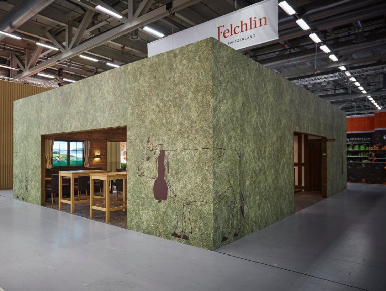 An der diesjährigen Fachmesse für Bäckerei-, Konditorei- und Confiseriebedarf (FBK) präsentierte das Schwyzer Schokoladenunternehmen Max Felchlin AG seine neusten Heumilch-Produkte aus dem UNESCO-Biosphärengebiet Entlebuch. Um ihrem Messestand möglichst viel Ausstrahlungs- und Anziehungskraft zu verleihen, engagierten sie das Atelier Kunz+Tellenbach, das zum Thema „Alpenchic“ ein Konzept erarbeitete. Die Polydesigner3D setzten bereits die Vergrösserung des Fabrikladens der Schwyzer Firma um und die Zusammenarbeit hatte sich bewährt.