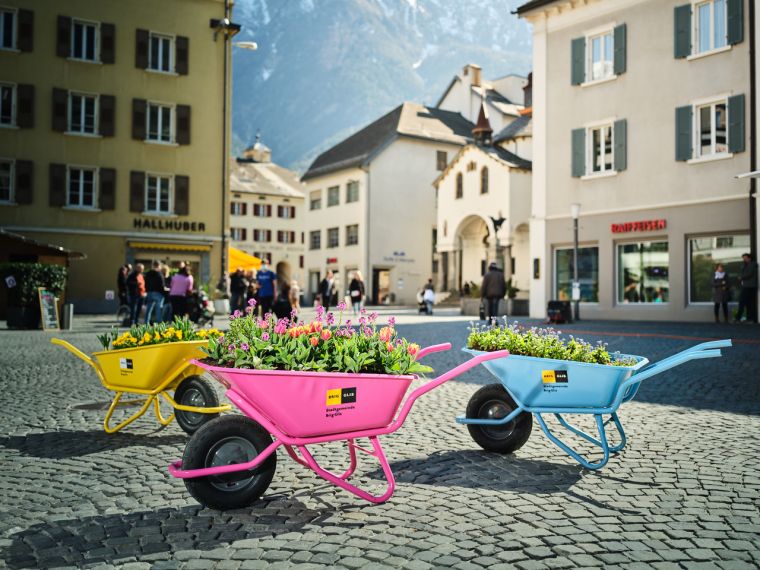 Vor einem Jahr, als uns die Coronapandemie bereits fest im Griff hatte und wir uns gerade im erneuten Lockdown befanden, kam der selbständigen Polydesignerin3D Sibylle Meier, die bereits seit 2006 mit ihrem Atelier «Showyou» verschiedenste Kundenwünsche erfüllt, eine zündende Idee: Die Oberwalliserin wollte in dieser verrückten Zeit, der sich ausbreitenden Depression entgegenhalten und so kreierte sie ein Konzept für farbige Schubkarren, welche den Stadtkern von Brig-Glis erheitern. Ziel war es, einen Alltagsgegenstand zu finden, den jeder kennt und der sich in seiner Bedeutung komplett umkehren lässt, um aus Corona etwas Positives zu schaffen. Die Idee kam bei der Gemeinde Brig-Glis gut an und so war der erste Meilenstein für ein tragfähiges sowie nachhaltiges und vielseitig erweiterbares Stadtmarketingkonzept gelegt.