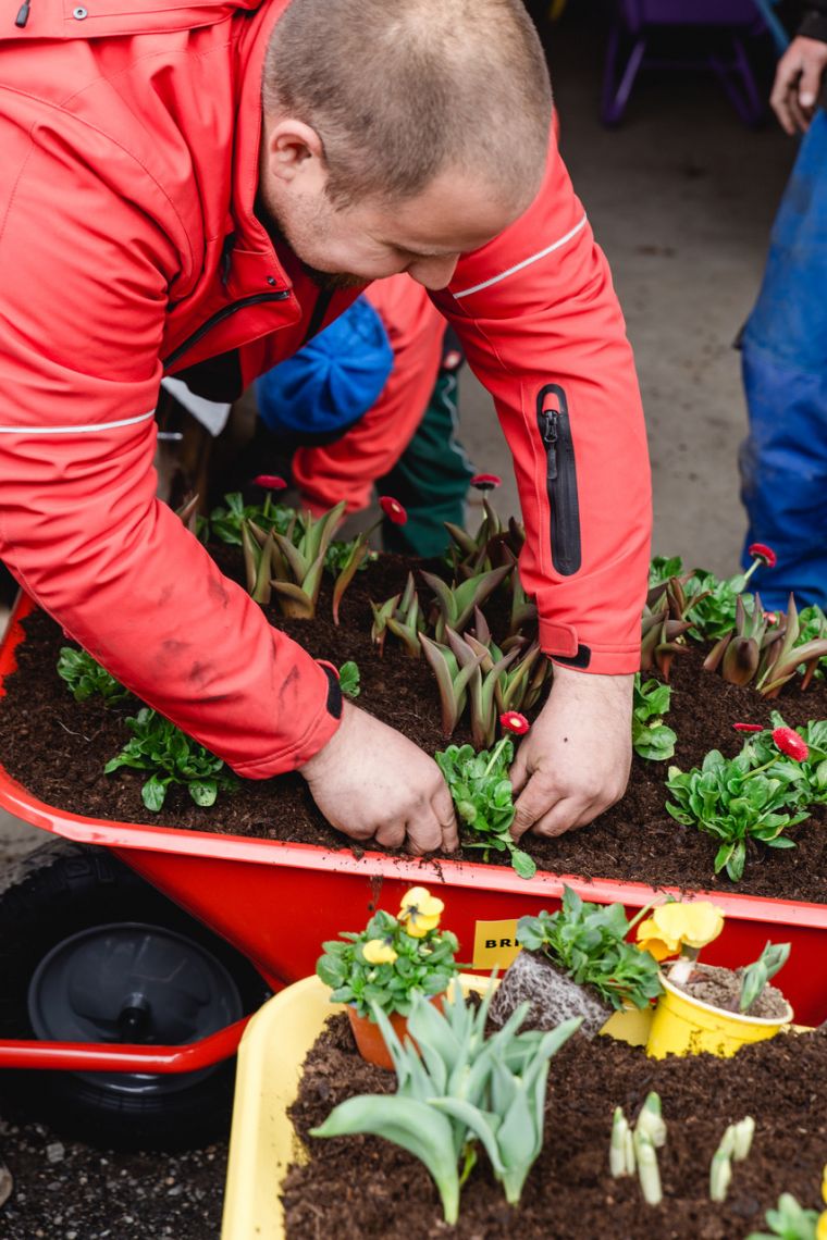 So auch bei ihrem einzigarten Projekt #FrühlingBrigGlis, mit dem sie aus eigener Motivation heraus proaktiv bei der Gemeinde Brig-Glis vorstellig wurde. Die Idee für die farbigen Schubkarren, welche mit fröhlichen Frühlingsblumen bepflanzt wurden, kam ihr im Austausch mit ihrem Künstler-Götti, mit dem sich die Kreative über die schwermütige, sich ausbreitende Corona-Depression austauschte, wie sie erzählt: «Wir haben zusammen nach Konzepten gesucht und uns die Stadt als Projektionsfläche ausgesucht. Die bunten Schubkarren waren schnell gefunden und blieben von allen Ideen die leuchtendsten Sterne am Himmel. Wir spürten intuitiv: darin steckt viel Potential!» Doch was hat es mit den Schubkarren überhaupt auf sich? Sibylle Meier wollte einen Alltagsgegenstand finden, den jeder kennt und der sich in seiner Bedeutung komplett umkehren lässt. Ziel war es, aus Corona etwas Positives zu gewinnen, dabei ging es um die Transformation von festgesetzten Bedeutungen: «Corona ist böse, Schubkarre ist Bauarbeit». Die «Stossbärre», wie sie die Oberwalliserin nennt, wurde zu einem Füllhorn voller Poesie und Schönheit gemacht und Corona zu einem Gedankenmodell, das unsere Gesellschaft positiver stimmt als vor der Pandemie. «Corona hat uns vieles gezeigt was wir verloren hatten, was wirklich wichtig ist im Leben und was wir jetzt so sehr vermissen: Nähe, Freundschaft, Gemeinschaft, Liebe.» Die verschiedenen Schubkarren sollen uns Menschen repräsentieren: Einzeln sind wir Grün oder Blau, Mann oder Frau und zusammen sind wir eine bunte Mischung, eine vielfältige Gesellschaft.