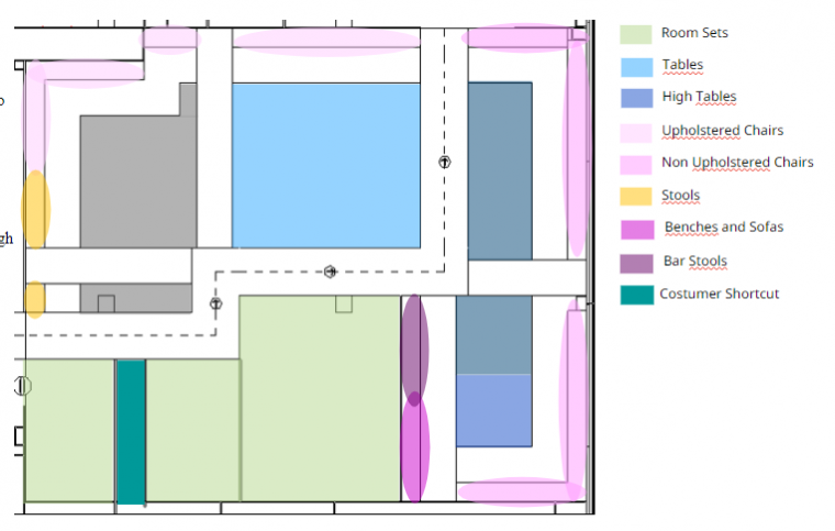 • Der Verkauf war zuständig dafür, dass alle Möbel angeschrieben wurden, unterstützte bei der Platzierung und hing die A4-Kommunikation auf.